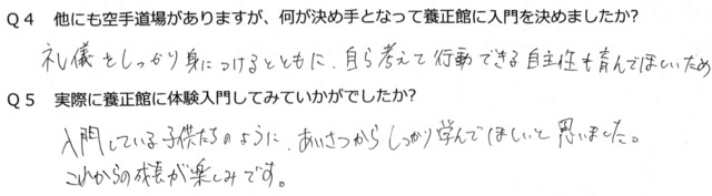 Q4.他にも空手道場がありますが、何が決め手となって養正館に入門を決めましたか?
